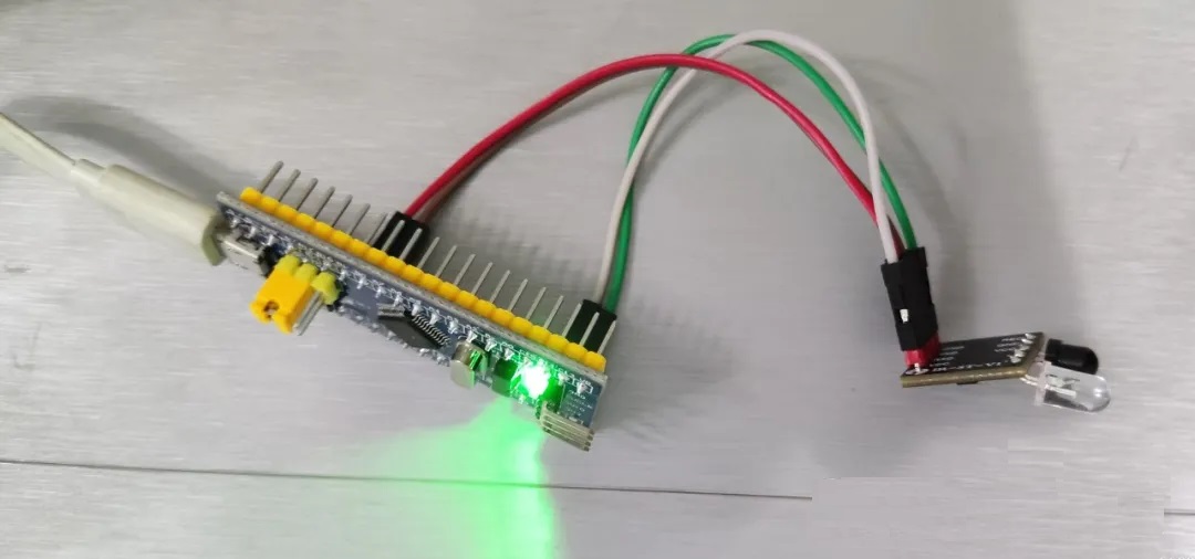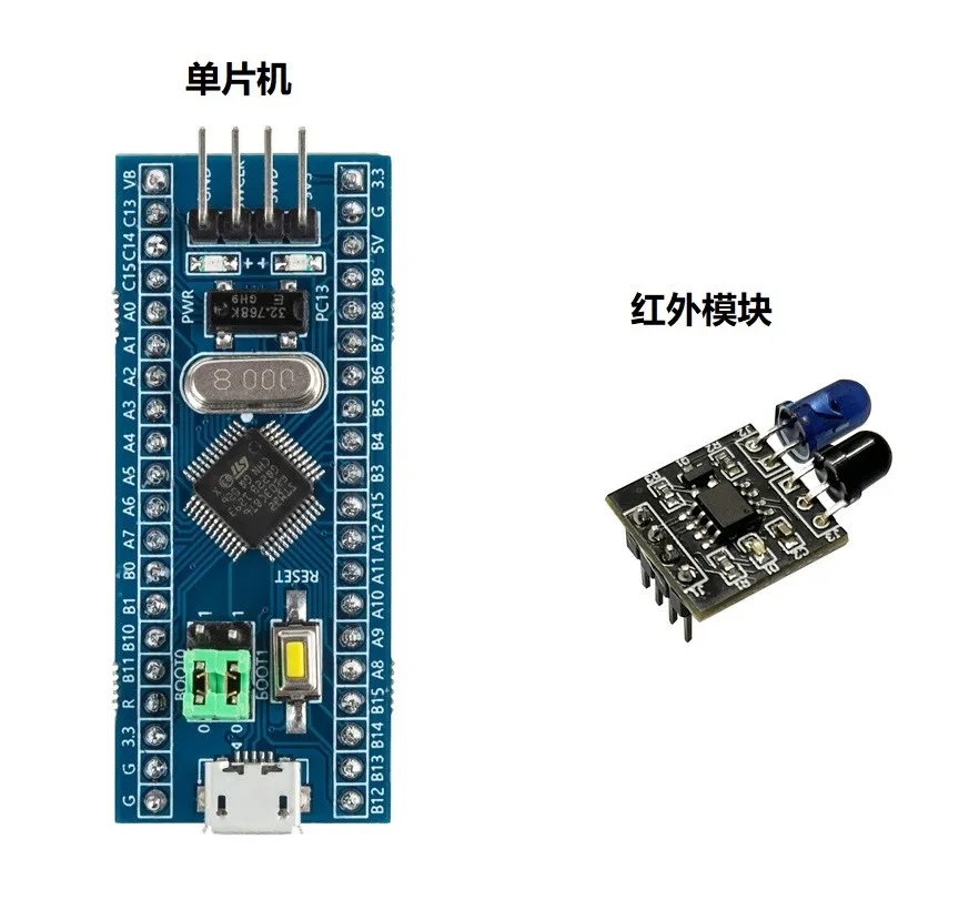 红外收发模块是在淘宝上对比了很多家才买的,这家店把模块封装的非常好了,拿来即用,不用管它内部怎么实现的,只管发指令就好了。该模块只支持串口通信,所以单片机启用了串口1,对应的引脚是 PA9 和 PA10。