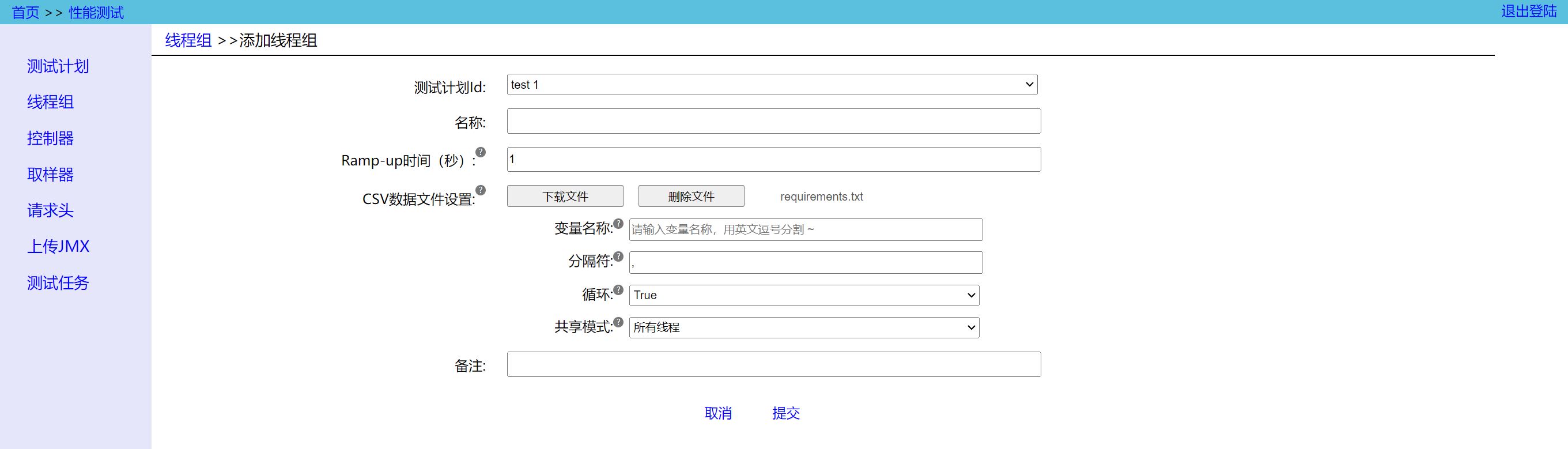 - Plan ID:将该线程组绑定到指定的测试计划;