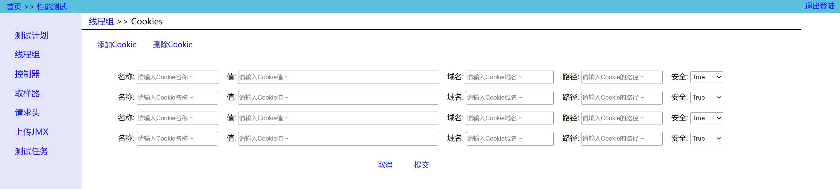- Cookies:如果压测需要 cookies,可以在这里设置;对应的是 JMeter 中的 Http Cookie管理器;