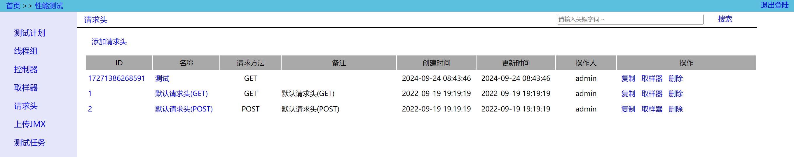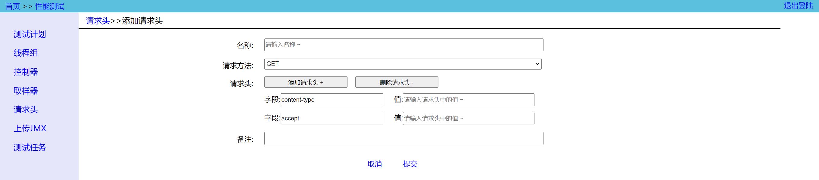 如果你是在Upload JMeter页面手动上传本地调试好的脚本,那么脚本中必须有 HTTP信息头管理器 ,当执行脚本时,会自动往请求头中添加 Performance-Header 字段。
