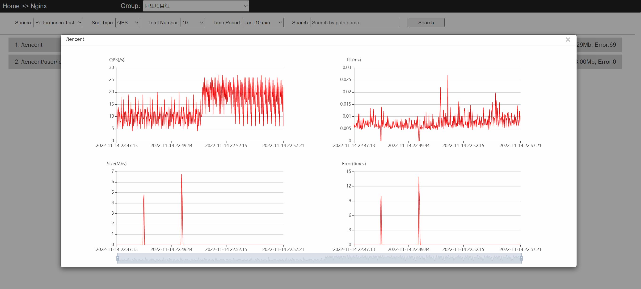 - View:查看单个施压机的压测数据;
