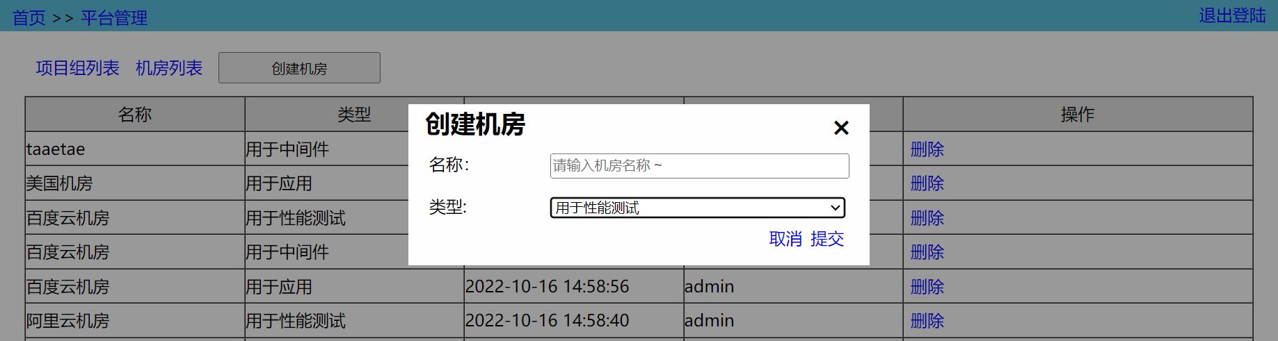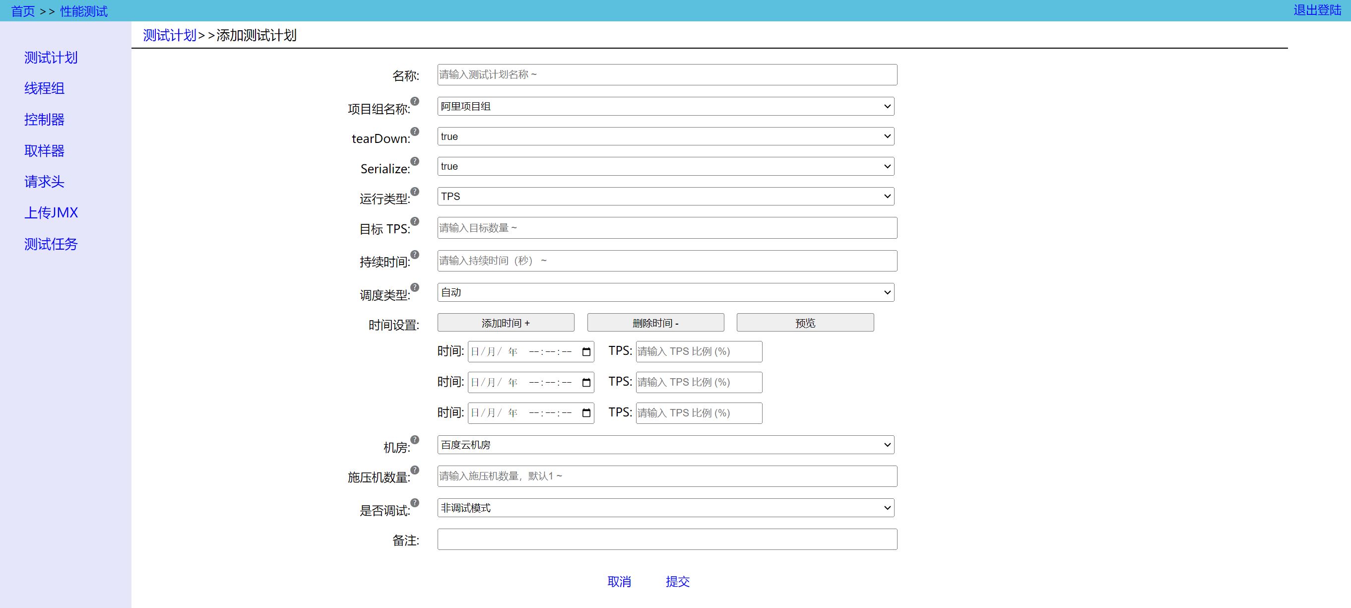 - Server Room:机房,指的是施压机所在的机房,压测脚本会在设置的机房的施压机上运行 (一般性能测试尽可能避免跨机房,减少网络对性能测试的影响)。压测时,该机房必须有可用的(空闲的)施压机;