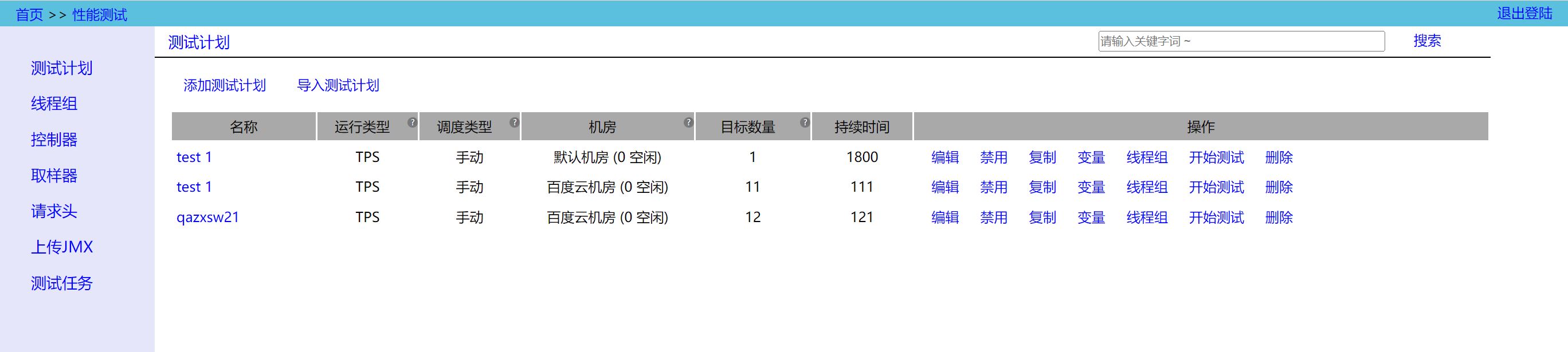 - Copy:复制,快速复制一个测试计划;